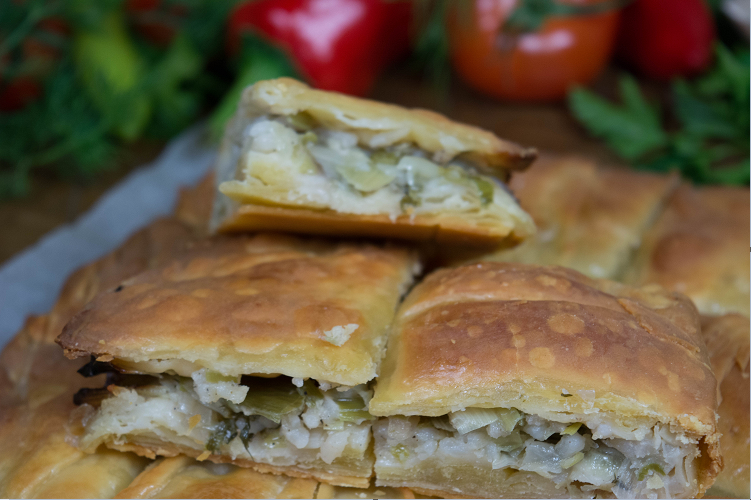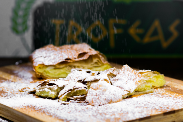 Παραδοσιακή χειροποίητη μπουγάτσα Θεσσαλονίκης με φύλλο αέρο...