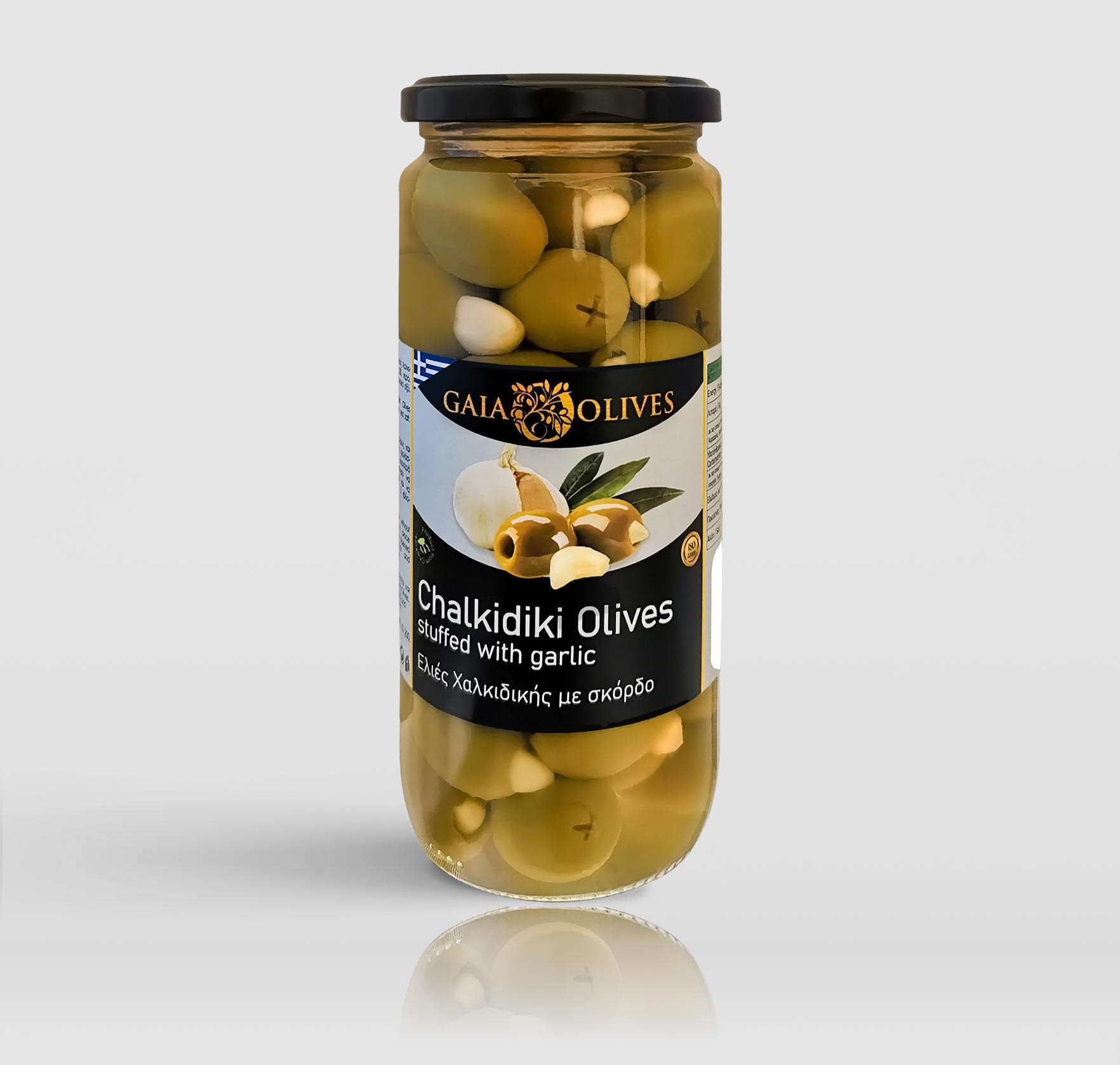 Γεμιστές πράσινες ελιές με σκόρδο ποικιλίας Χαλκιδικής σε άλ...