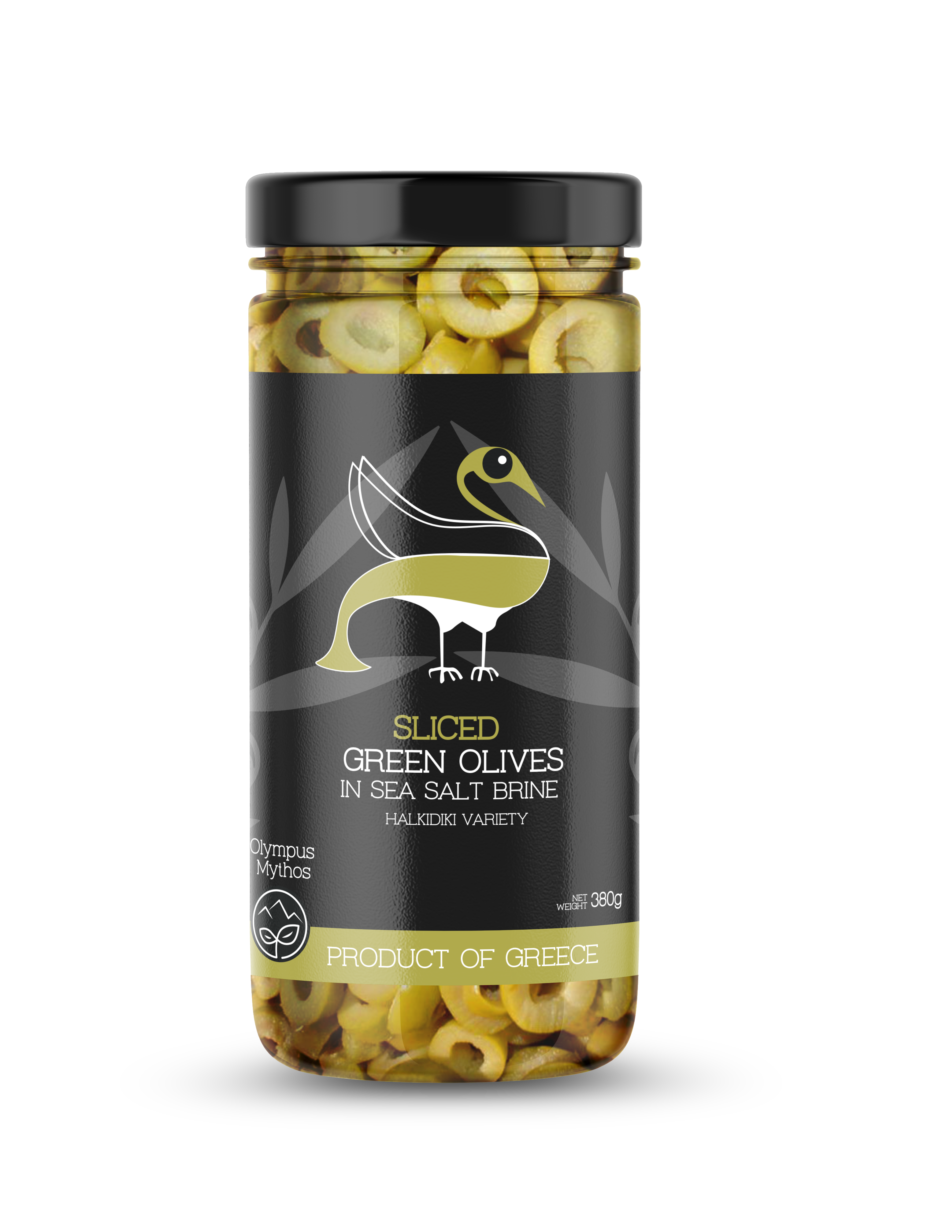 Πράσινες Ελιές σε φέτες, της ποικιλίας Χαλκιδική, μέσα σε άλ...