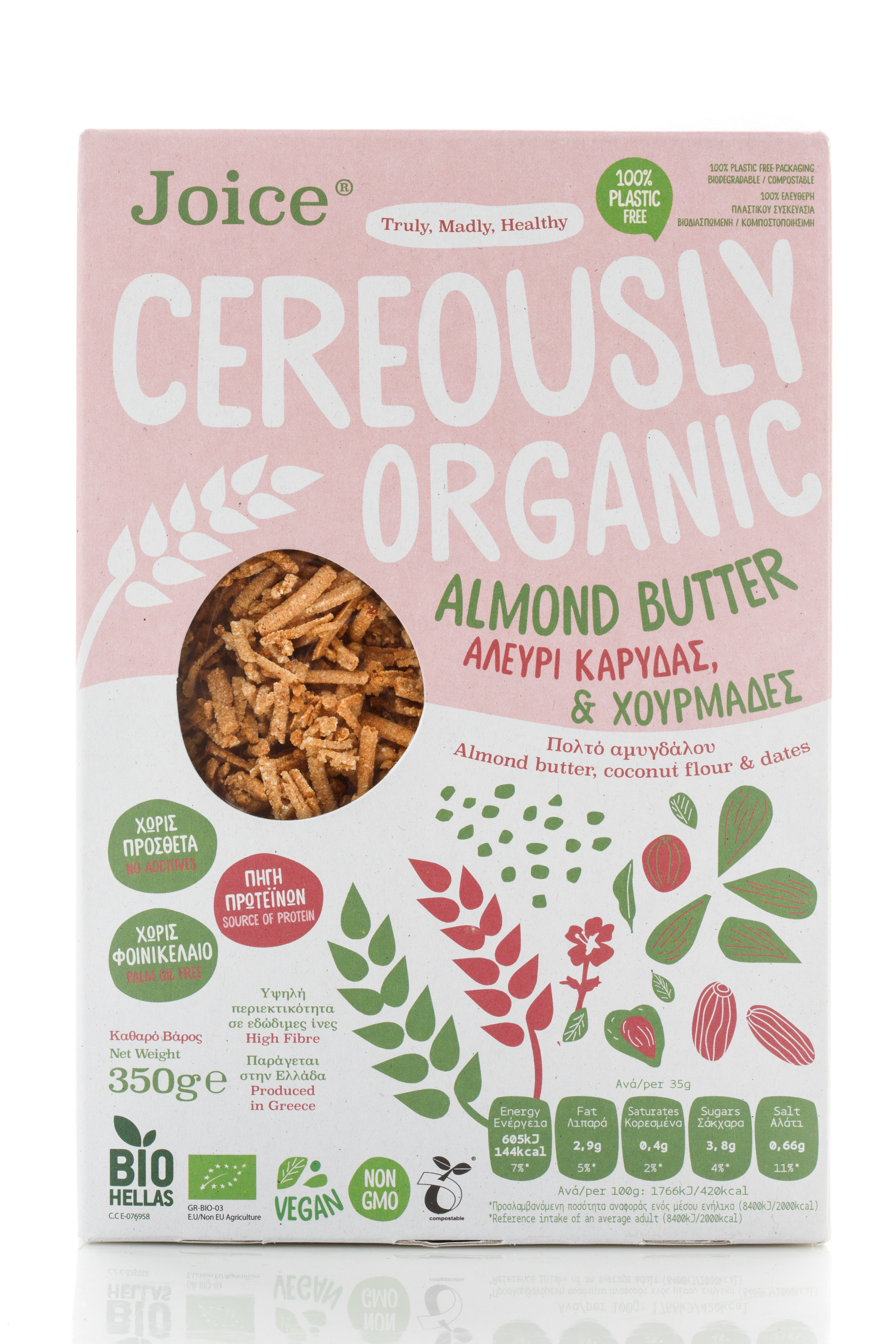 Περιέχει: Αμύγδαλα, σοκολάτα υγείας με στέβια, φιστίκια, ηλι...