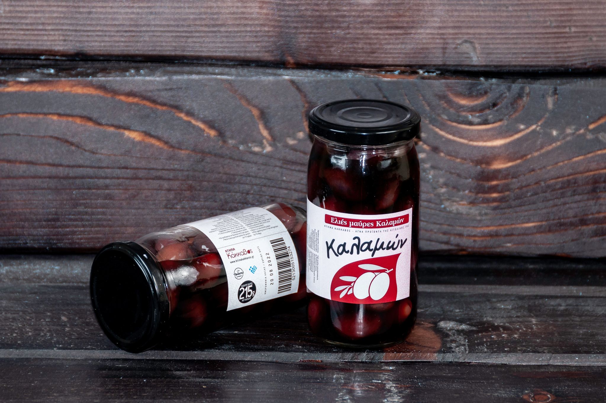 Μαύρες ελιές ποικιλίας Καλαμών μέσα σε άλμη θαλασσινού αλατι...