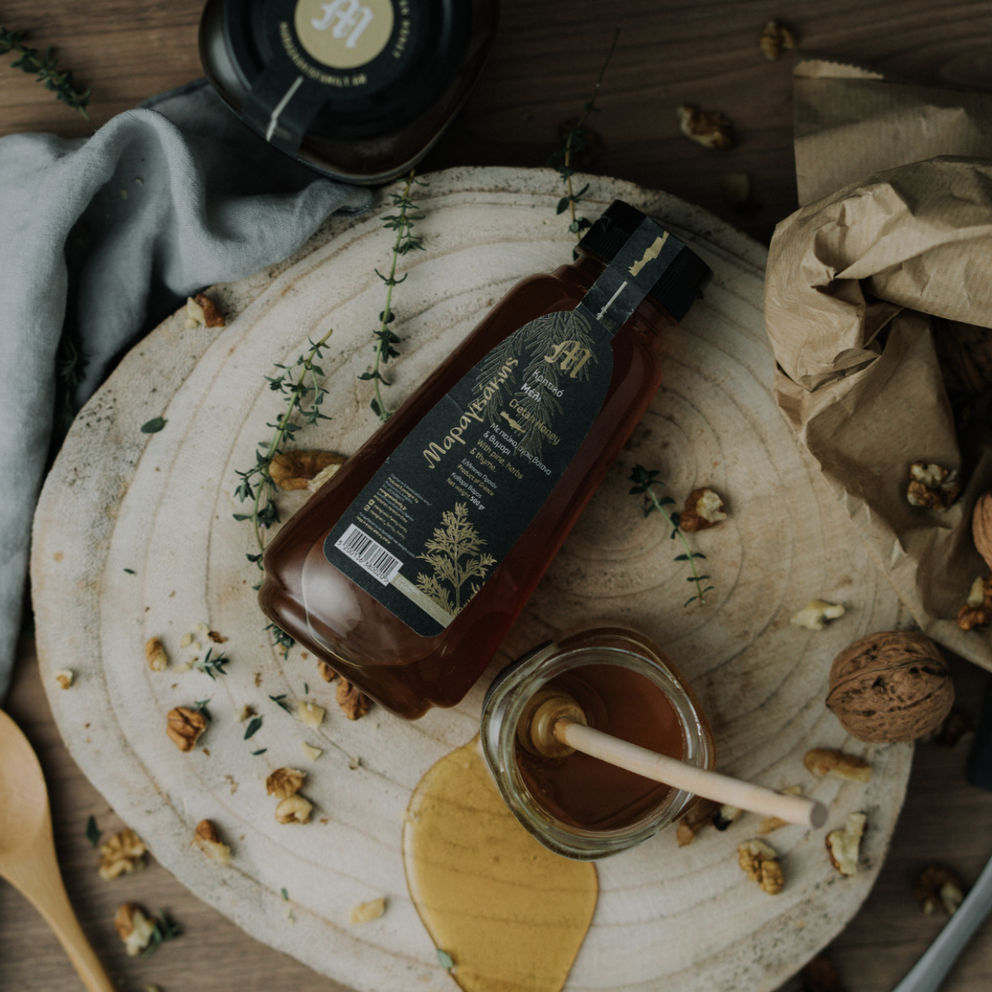 Μέλι που έχει συλλεχθεί στα καταπράσινα πευκοδάση της Θάσου.